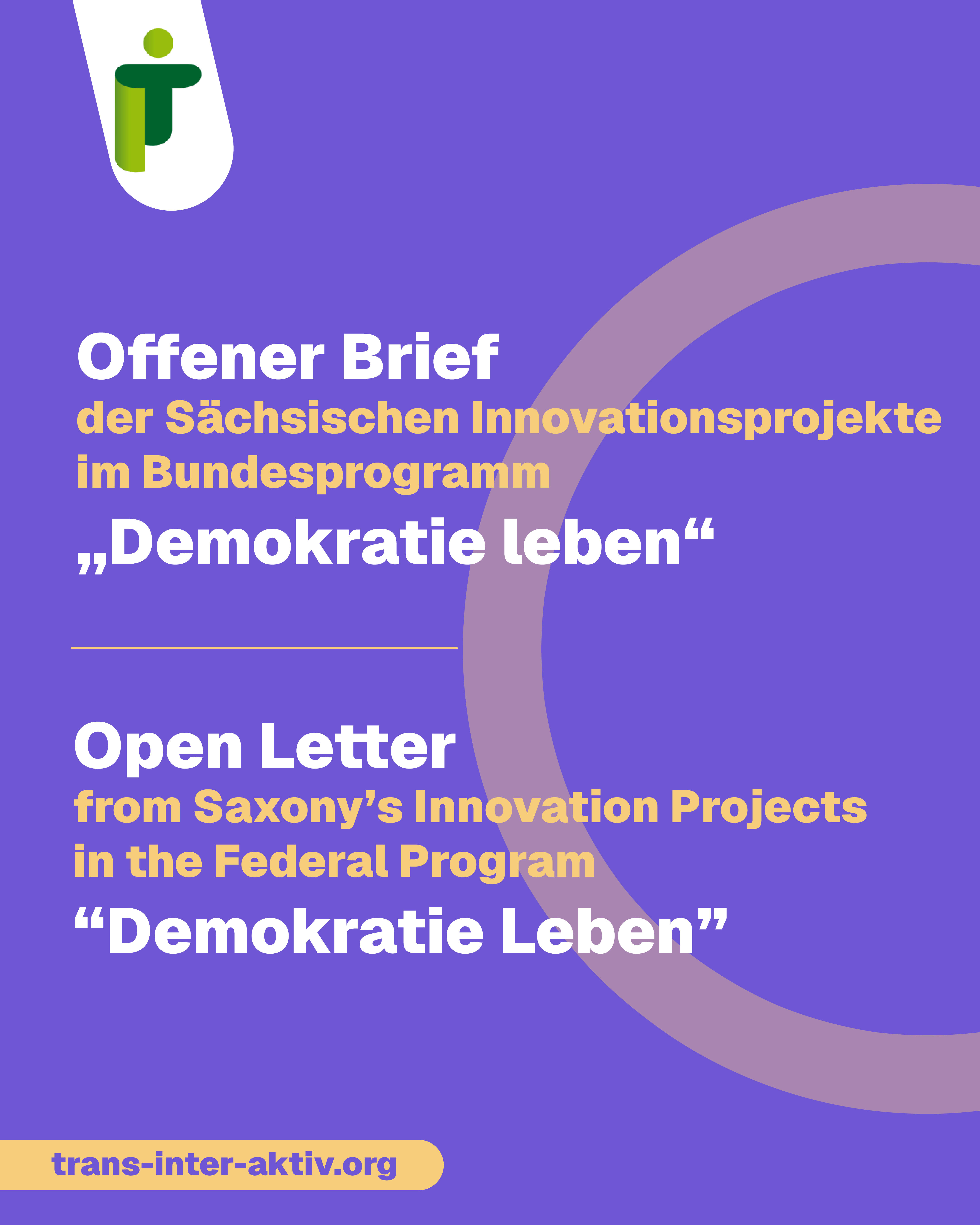 Für eine starke tian* Community in Sachsen und Thüringen! Unser Projekt stärkt Selbstwirksamkeit, Austausch und Solidarität in Zeiten wachsender Feindlichkeit. Mit Vernetzungstreffen, Workshops und Unterstützung beim Aufbau lokaler Gruppen schaffen wir handlungsfähige, intersektionale Community-Strukturen.